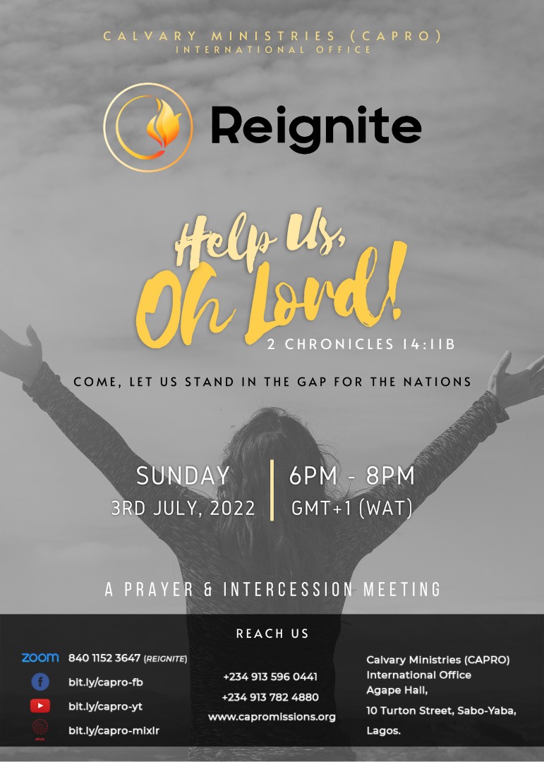 Brethren, this July Reignite is a wake up call for the church. We need to arise in the place of prayer and with one voice cry to Heaven that He may send us Help from above.