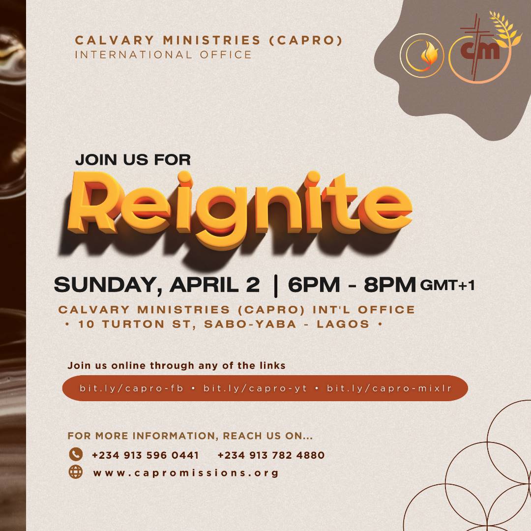 Do pray along and plan to attend REIGNITE this sunday; either physically or virtually.